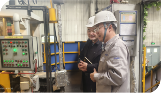 在座談交流結(jié)束后,戴卡輪轂生產(chǎn)副總徐永進(jìn)與精益推進(jìn)負(fù)責(zé)人曹咪瑞陪同我方團隊深入生產(chǎn)現(xiàn)場參觀學(xué)習(xí)。過程中,我方重點考察了三門峽戴卡在鑄造與機加工序方面的加工效率提升措施、精益管理推進(jìn)機制、安全預(yù)防體系構(gòu)建,以及自動化與數(shù)字化建設(shè)情況。